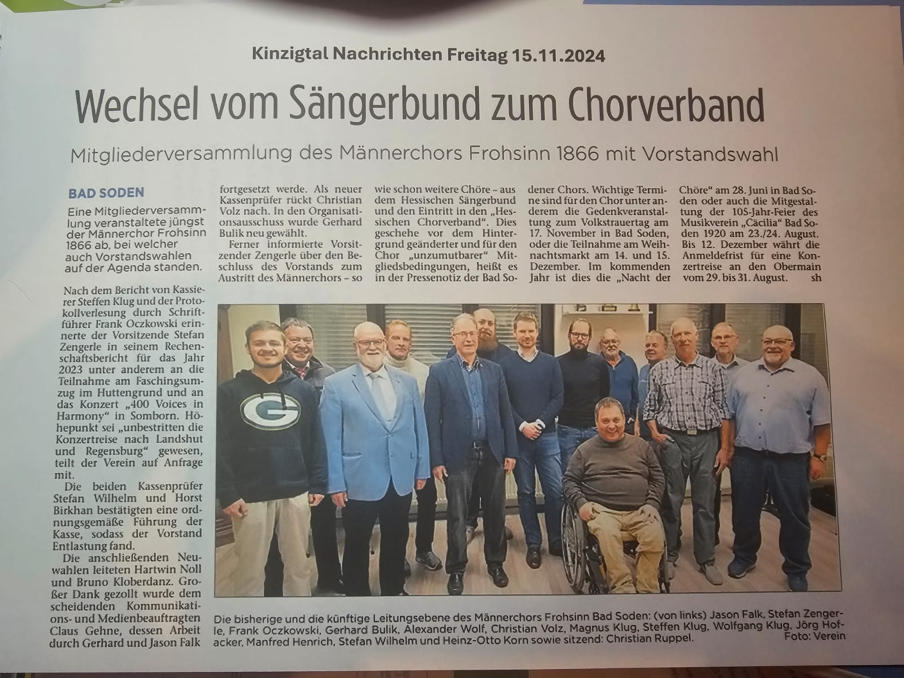 Männerchor Frohsinn Bad Soden in der Presse