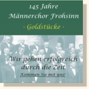 2011 Das JubiläumsjahrDas Jahr 2011 ist geprägt durch das 145 Chorjubiläum unseres Männerchors. Dieses Motto begleitet uns durch das ganze Jahr 2011 und hatte bereits einen Höhepunkt mit unserem großen Galakonzert am 15. Mai 2011 in der Großsporthalle in Salmünster. Über 600 Menschen lauschten den Darbietungen unserer Chöre, begleitet von der Kammerphilharmonie Bad Nauheim und belohnten die Aktiven Künstler mit standing Ovations. Sie können einen Life-Mittschnitt dieses Jubiläumskonzerts in unserem Shopbestellen.